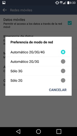 - Seleccione “Tipo de red” y luego seleccione “4G”.