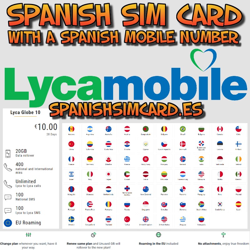 Lycamobile es una compañía móvil con sede en el Reino Unido y ofrece tarifas de voz, datos y SMS a nivel internacional. Por 10 euros, Lycamobile ofrece a los usuarios 20 GB de datos. Esta tarifa se aplica a todos los países, con la excepción de Francia, en donde la tarifa es de 15 GB por 10 euros. Además, Lycamobile ofrece una tarifa de 30 GB por 15 euros a nivel europeo y mundial.