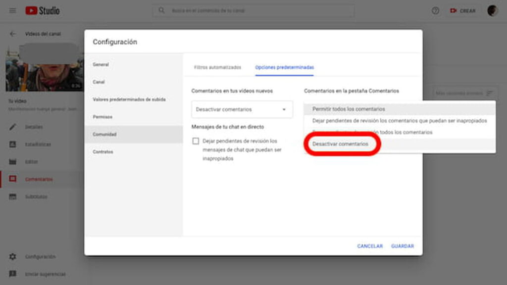 ¿Cómo desactivar comentarios en YouTube?