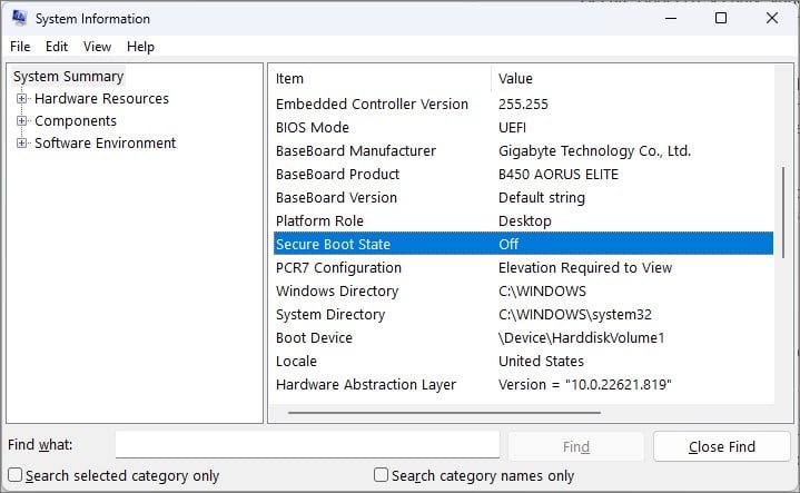 Es importante tener en cuenta que, si el usuario desea desactivar el Estado de Arranque Seguro, deberá desmarcar la casilla "Habilitar Estado de Arranque Seguro" en la sección de Configuración de Arranque. Esto volverá a cargar todos los programas y servicios que se deshabilitaron al activar el Estado de Arranque Seguro.