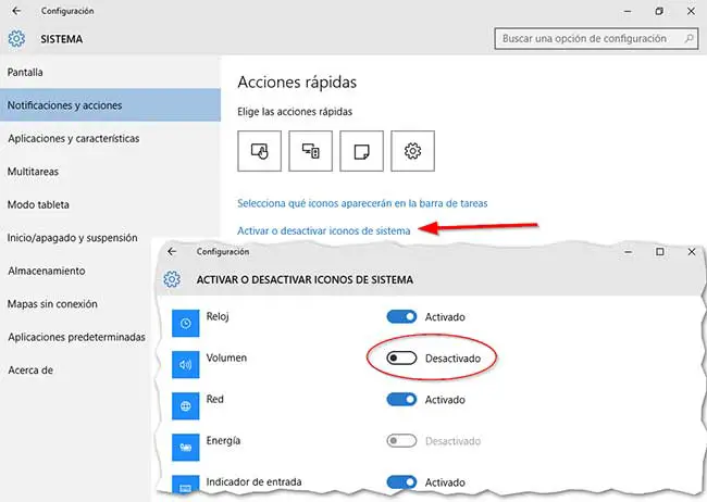 El icono de volumen se encuentra en la parte inferior derecha de la pantalla, al lado del reloj. Si desea reactivar el icono de volumen, siga estos pasos: