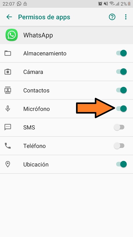 Cómo activar el microfono en Whatsapp