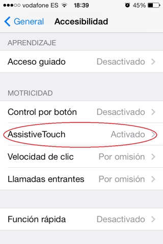 2. Busca el botón Assistive Touch y habilítalo para activar la función.