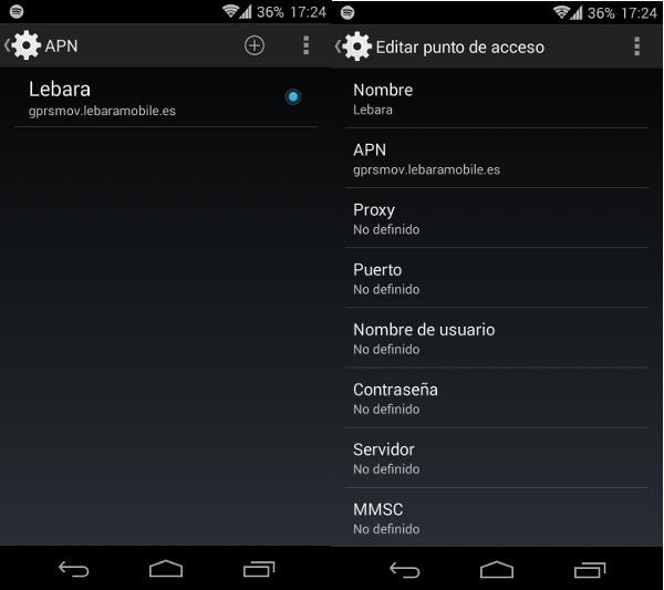 • Busca en tus ajustes el APN (nombre de punto de acceso) y añade el APN: lebara.es