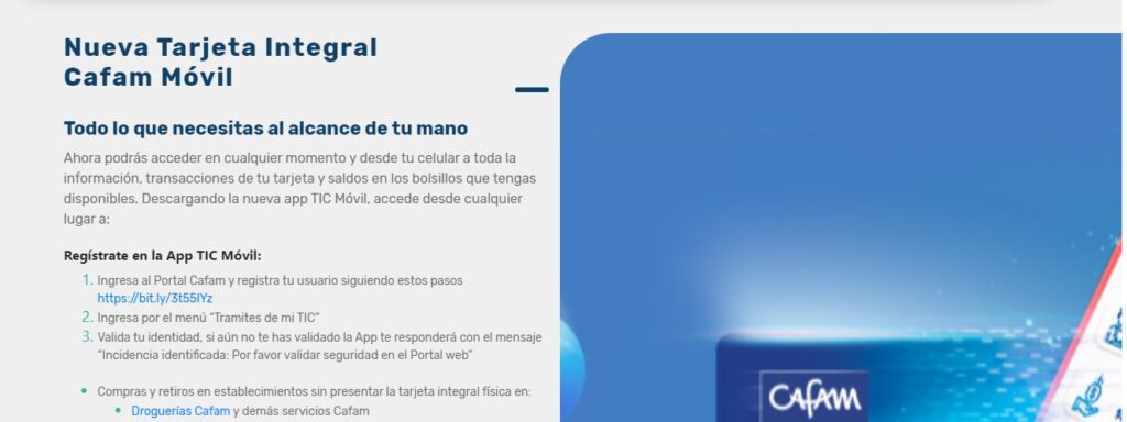Para las tarjetas físicas, se debe ingresar al sitio web de Cafam y hacer clic en el botón de activación. Allí se debe ingresar la información de la tarjeta, como el número de tarjeta y la fecha de vencimiento. Una vez que se ha completado el proceso de activación, la tarjeta estará lista para su uso.
