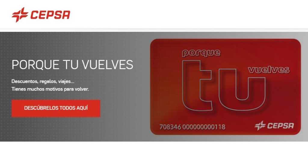 La tarjeta Cepsa Porque Tú Vuelves ofrece numerosos descuentos en productos y servicios Cepsa. Entre ellos: