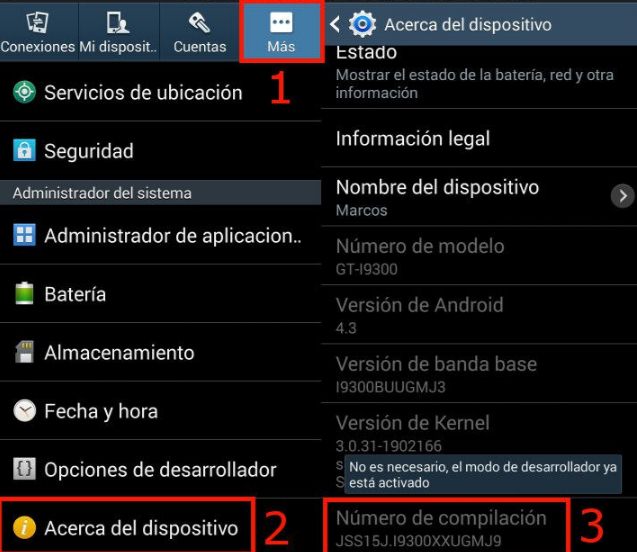 - Haz clic en ella para activar las Opciones de Desarrollador.