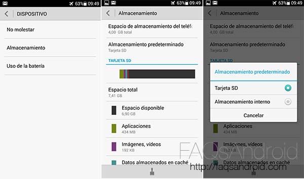Luego, es necesario cambiar la configuración del teléfono para que guarde los datos en la tarjeta. Para ello, hay que dirigirse al apartado de almacenamiento nuevamente, seleccionar la tarjeta SD y cambiar la configuración para que el teléfono guarde los datos en la tarjeta.