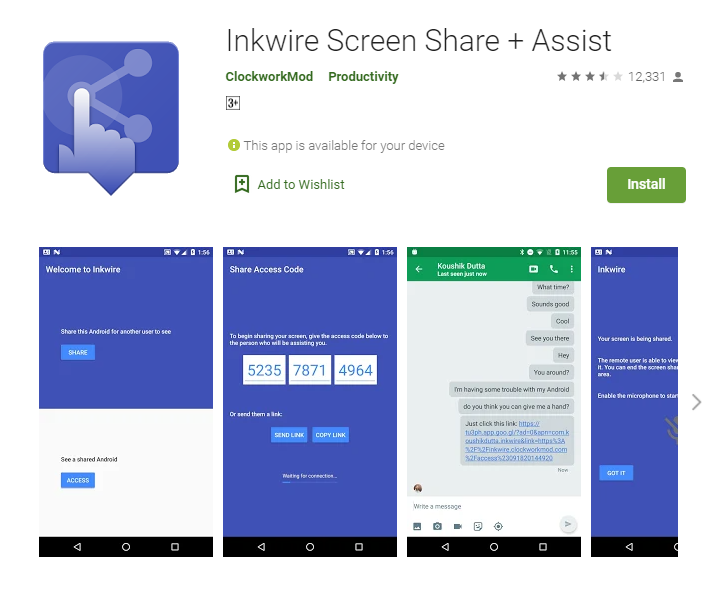 - Instale Inkwire Screen Sharing y luego ejecute Inkwire Screen Sharing, que solo ocupa 15 MB en su dispositivo.