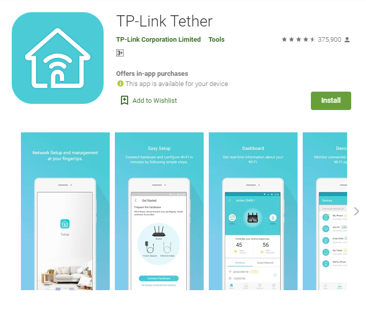 - También verá los resultados de búsqueda de la aplicación TP-Link Tether, simplemente instálela y busque la aplicación aquí cuyo desarrollador aparece como TP-LINK Technologies Co., Ltd.