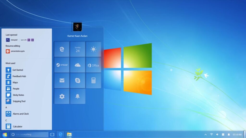 El diseñador bajo el apodo de Avdan lanzó un video-concepto de lo que sería Windows 7 lanzado este año. En su creación combinó las innovaciones de Windows 10 y los elementos que muchas personas aprecian hasta ahora en el "siete".