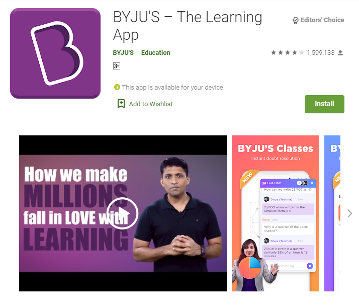 de byju es en realidad la mejor aplicación de aprendizaje creada a través de En Byju. de byju lectores experimentales aprendiendo aumentando el número de juegos interactivos y concursos. Este método ayuda a comprender cómo funcionan los conceptos matemáticos y científicos. Está diseñado principalmente para ayudar a cada estudiante a enamorarse del aprendizaje. Puede obtenerlo fácilmente desde Google Play Store si es un usuario de Android.