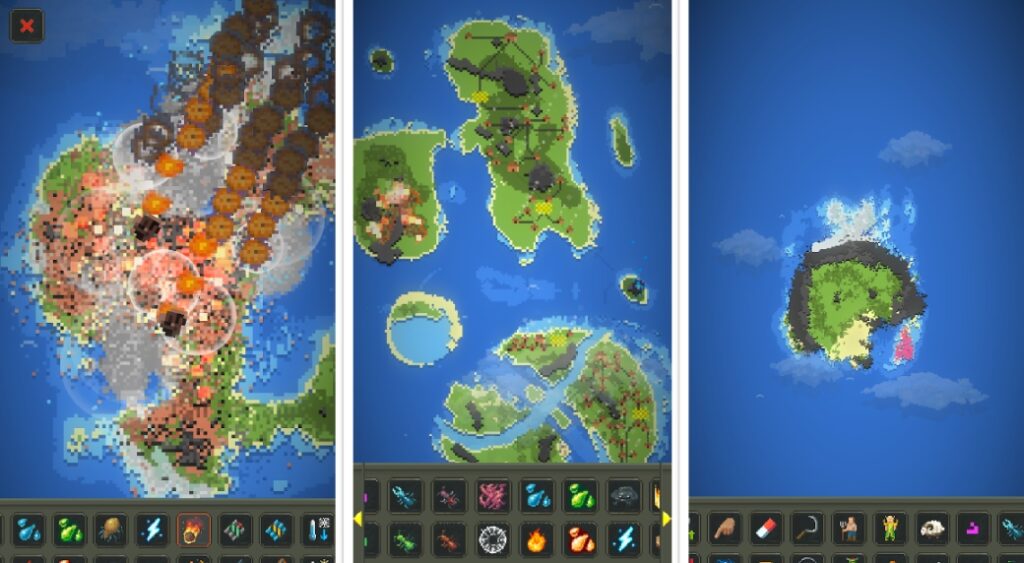• Simula diferentes desastres. Estrellas fugaces, fuentes de magma líquido, magma, tornados, manantiales y mucho más. Simule y observe el desarrollo de los animales y el surgimiento de establecimientos cívicos.