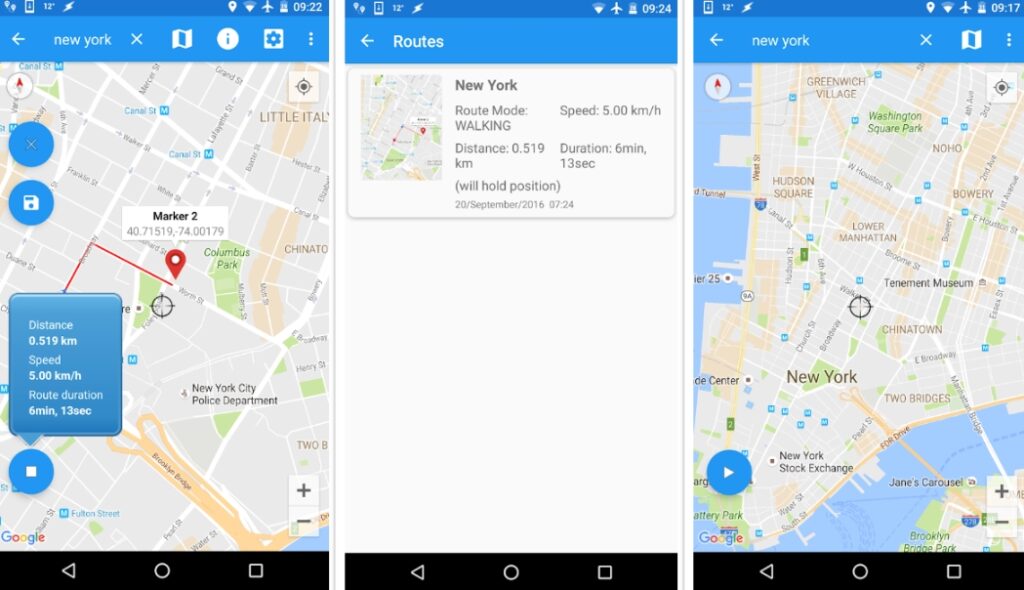 Es posible construir caminos artificiales en puntos. Habiendo elegido la ruta necesaria, puede dar una apariencia real a la pseudo ruta. ¿En qué rango de velocidad ocurre el movimiento? ¿Dónde reducir la velocidad y dónde ir más rápido? ¿Quizás es hora de "pasar por una gasolinera"? Todas estas opciones se pueden personalizar fácilmente para darle a su viaje el aspecto más realista. El rendimiento técnico es de buen nivel, considerando una idea bastante inusual. La aplicación puede funcionar silenciosamente en segundo plano, y todos los programas restantes en el teléfono inteligente percibirán la ruta artificial como real. También es posible ocultar por completo el hecho de que algo así suele funcionar en el dispositivo.