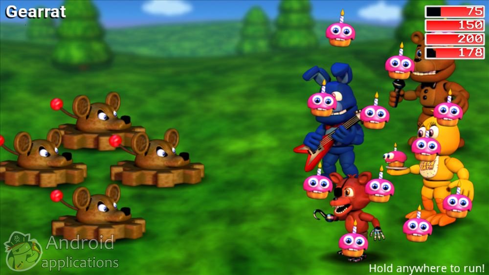 Aquí son extraños: en qué orden caminan los personajes y atacan los monstruos sin ninguna animación. Es solo que nuestros héroes están perdiendo lentamente la salud. Después de derrotar al enemigo, elevamos el nivel de nuestros animatrónicos y también ganamos fichas, que luego se pueden comprar con muchas bonificaciones útiles.
