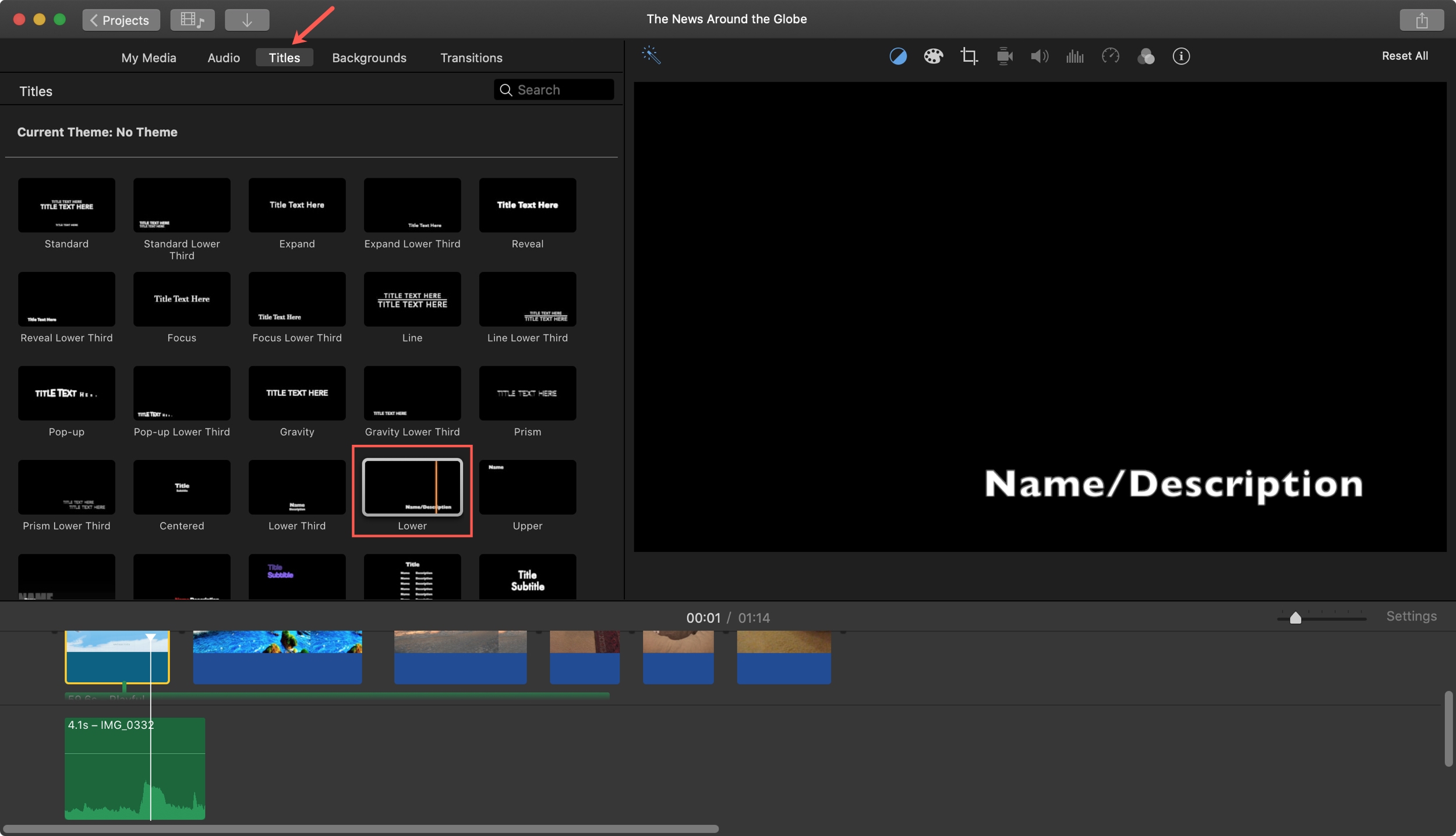 Agrega un subtítulo o pie de foto en iMovie en la Mac