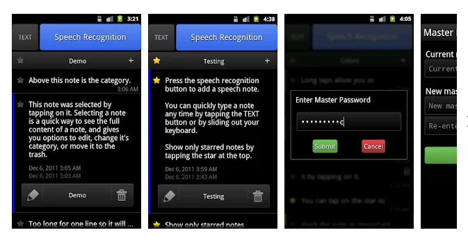 - Opción de protección con contraseña para notas.