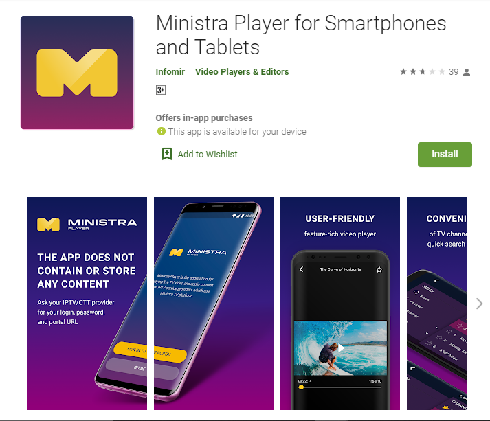 Ministra Player para Smartphones y Tablets también tiene 1,000+ descargas hasta ahora con un 3.1 estrellas calificación de la aplicación en Play Store también. Esta aplicación está actualmente disponible en la categoría de reproductores de video y también aparece en la sección Elección del editor de Play Store.