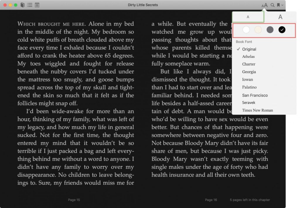 Ya sea que desee minimizar la fatiga visual por la noche o simplemente cambiar la apariencia a algo más cómodo para usted, es bastante fácil hacerlo en la aplicación Libros.