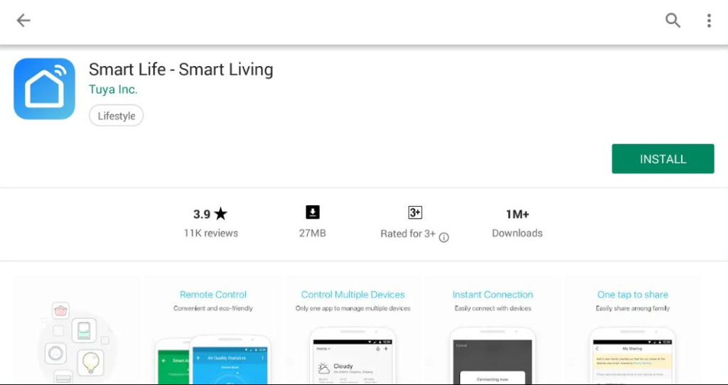 4. Aparecerá una ventana emergente con los detalles de la aplicación de Android. Además, busque el botón de instalación y haga clic en él. Después de la instalación, encontrará el acceso directo a la aplicación Smart Life en la pantalla de inicio. Pero, haga clic en él e inicie la aplicación Said Android para Windows y Mac.