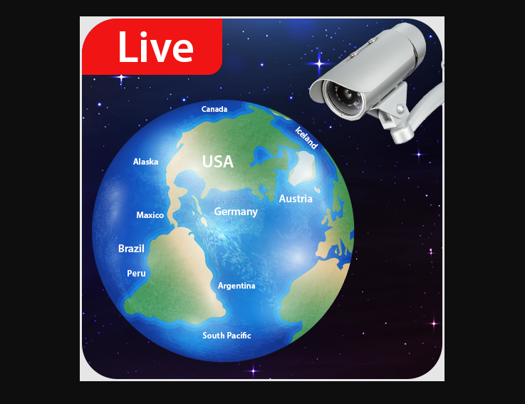 Mire la aplicación de cámaras en vivo del mundo y disfrute o explore la belleza de la naturaleza y las ciudades con la cámara en vivo y la cámara web de la ciudad y la ubicación en el mapa de la tierra. También puede ver toda la tierra usando la transmisión de cámara web en vivo y cámaras terrestres HD. Simplemente explore las hermosas vistas del mundo con una cámara web en vivo o una cámara CCTV. Además, disfruta de vistas de cámaras terrestres en vivo después de usar cámaras de red y cámaras web. Simplemente visite la playa o las vistas de la ciudad con cámaras de playa en vivo o cámara web de la ciudad.