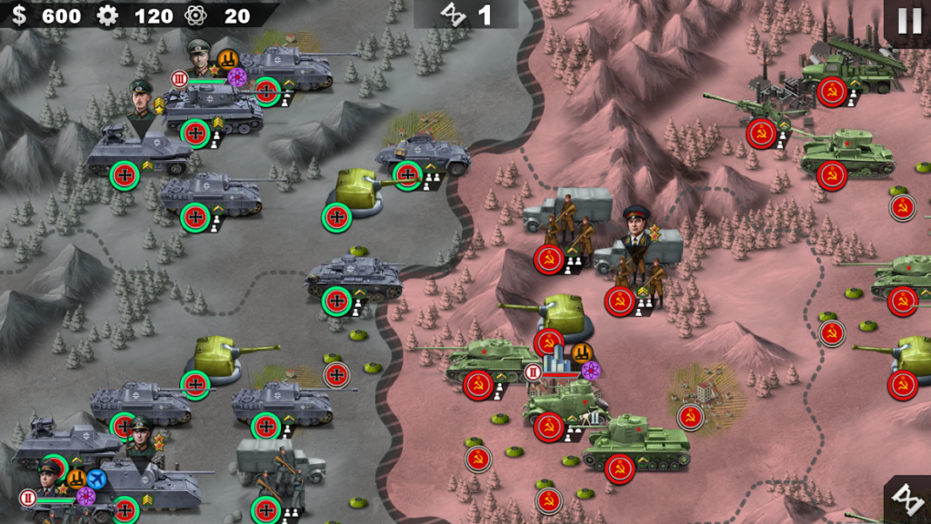 Elige excelentes generales para luchar codo con codo, avanza en tus filas y elige las habilidades que más les convengan. Usa tu gen como con las medallas que has ganado para mejorar tus habilidades. Completa tareas específicas en la ciudad y compra recursos con comerciantes. Crea milagros mundiales y desbloquea todo tipo de atracciones. Explora nuevas tecnologías y aumenta la efectividad de combate de todas las unidades.